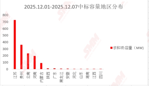 2025年12月1日至2025年12月7日, 当前统计区间SMM统计国内中标:正泰新能科技股份有限公司,隆基乐叶光伏科技有限公司,河南品雪科技有限公司,浙江爱旭太阳能科技有限公司,通威太阳能(合肥)有限公司,晶澳太阳能科技股份有限公司,南京欧陆电气股份有限公司,广东卓一铭科技有限公司共 31项,数据处理后,披露装机容量项目共21项,披露中标装机价格项目共8项,当前统计区间采购定标组件型号主要为N型组件。