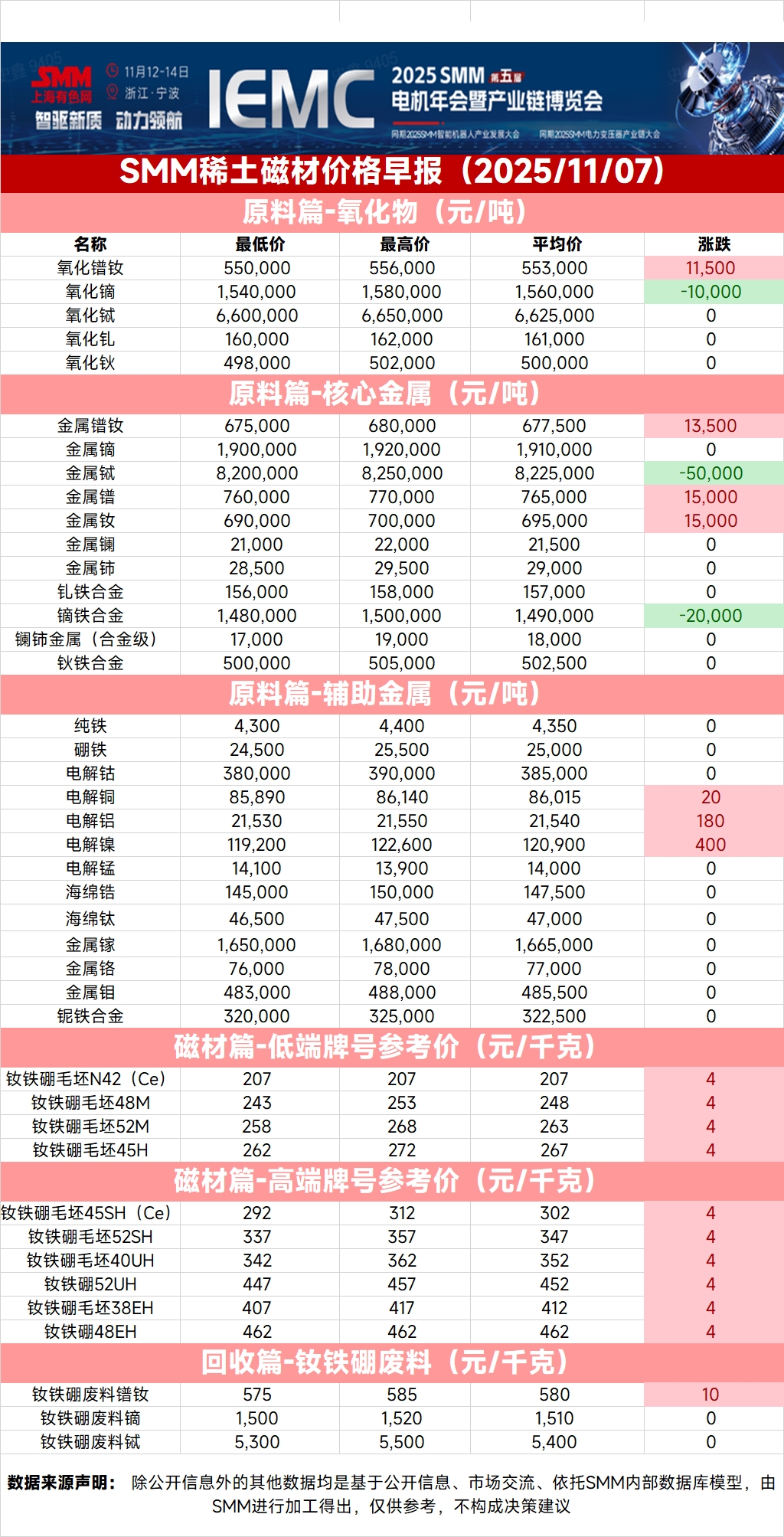 11月7日SMM稀土磁材价格早报,稀土磁材价格早知道!