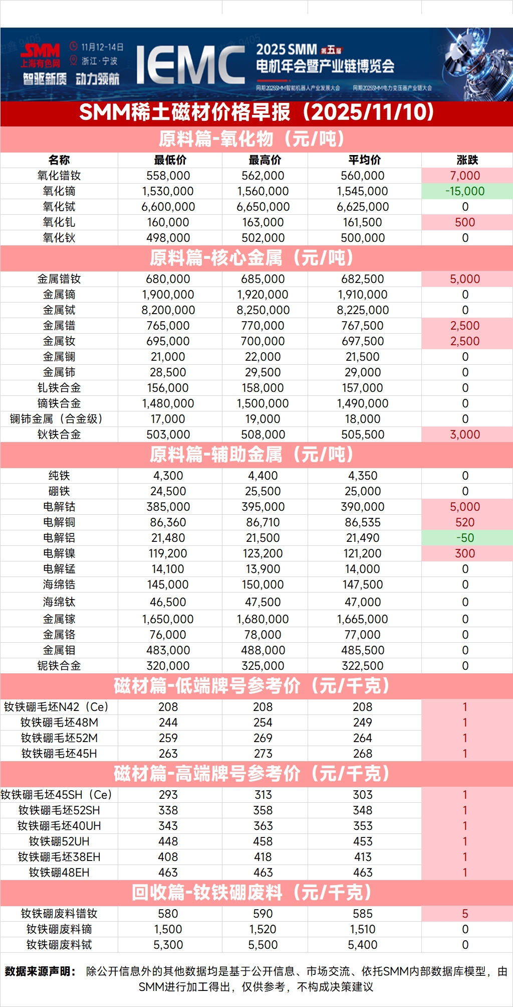 11月10日SMM稀土磁材价格早报,稀土磁材价格早知道!