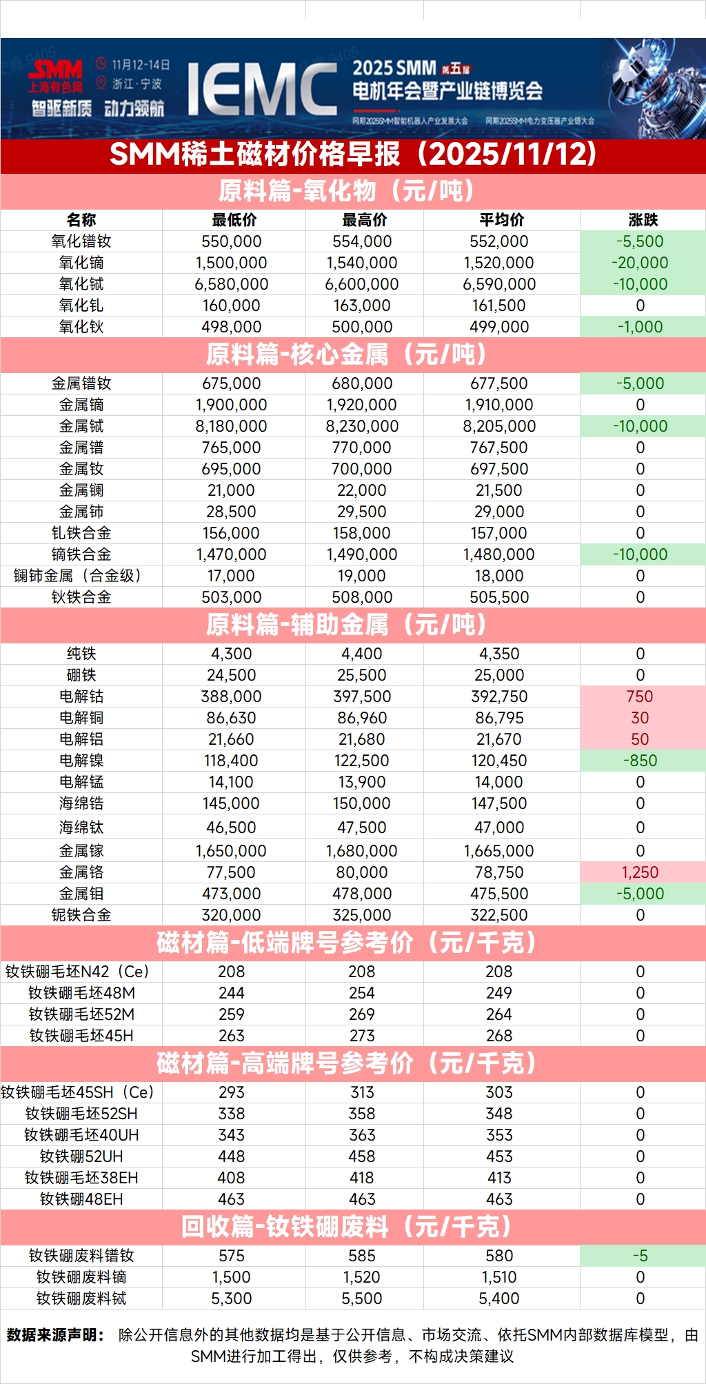11月12日SMM稀土磁材价格早报,稀土磁材价格早知道!