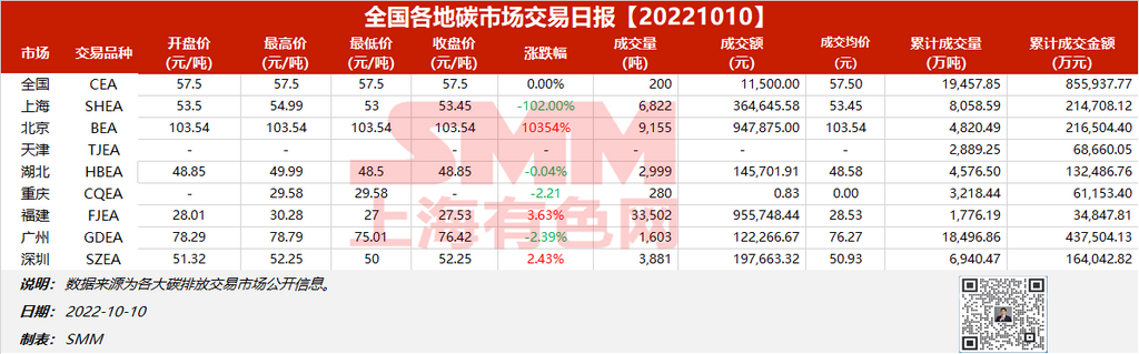 全国各地碳市场交易日报20221010【碳排放交易日报】