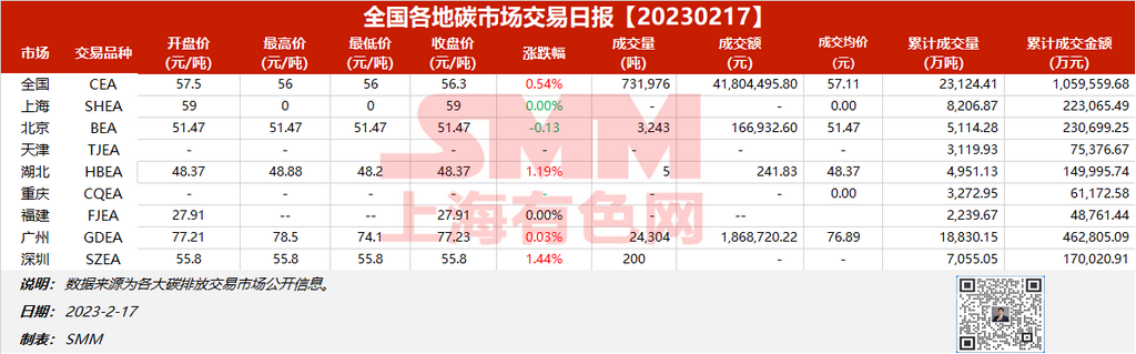 全国各地碳市场交易日报20230217【碳排放交易日报】