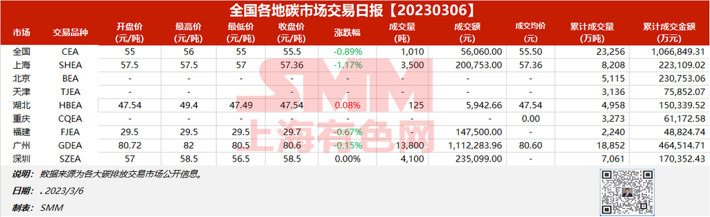 全国各地碳市场交易日报20230306【碳排放交易日报】
