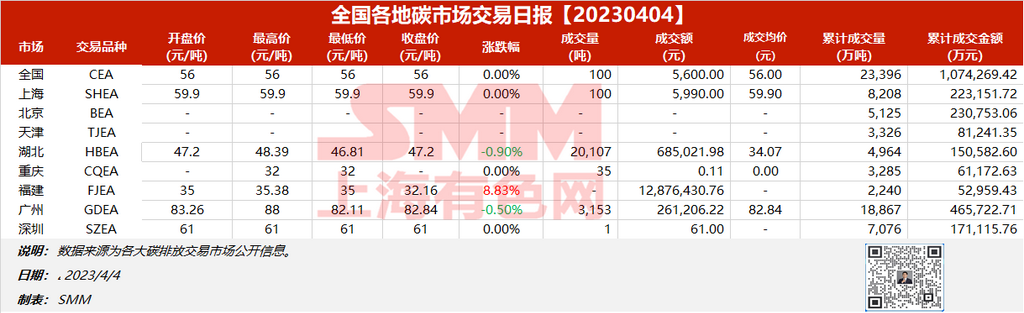 全国各地碳市场交易日报20230404【碳排放交易日报】
