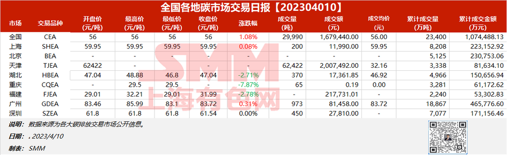 全国各地碳市场交易日报202304010【碳排放交易日报】