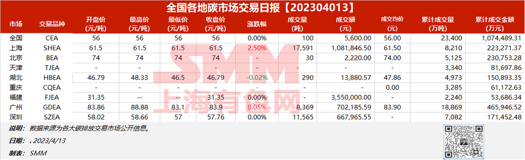 全国各地碳市场交易日报20230413【碳排放交易日报】