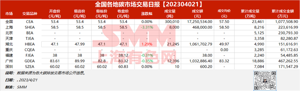全国各地碳市场交易日报20230421【碳排放交易日报】