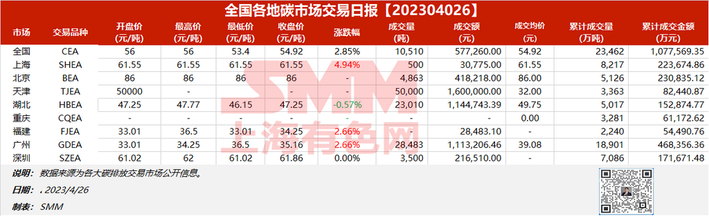 全国各地碳市场交易日报20230426【碳排放交易日报】