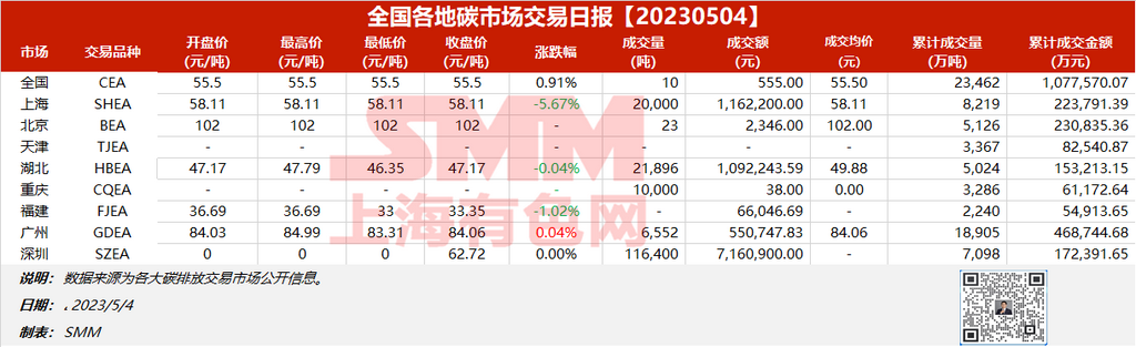 全国各地碳市场交易日报20230504【碳排放交易日报】