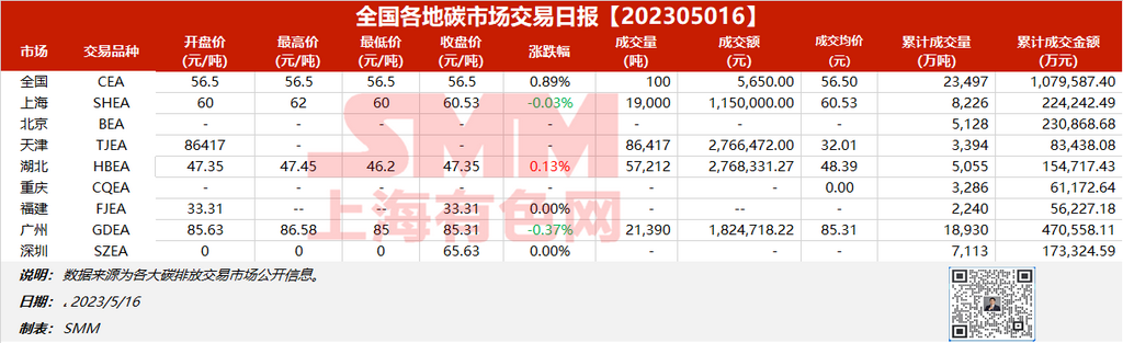 全国各地碳市场交易日报202305016【碳排放交易日报】