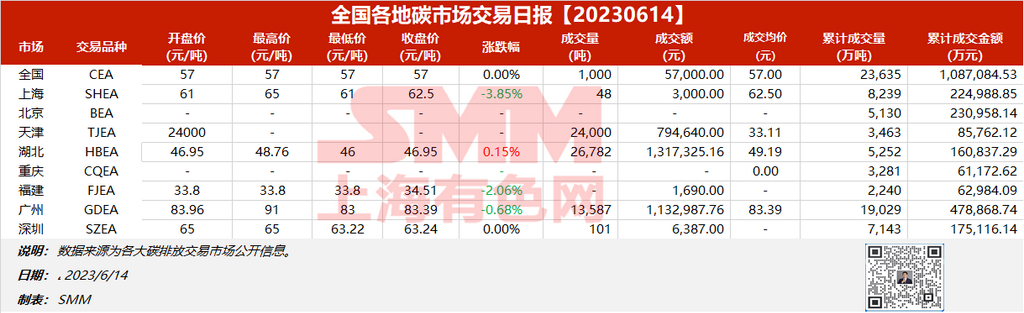 全国各地碳市场交易日报20230614【碳排放交易日报】