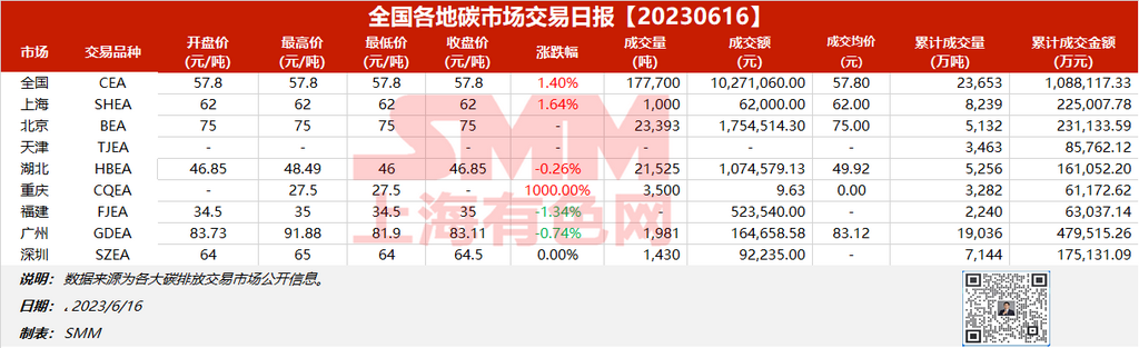 全国各地碳市场交易日报20230616【碳排放交易日报】