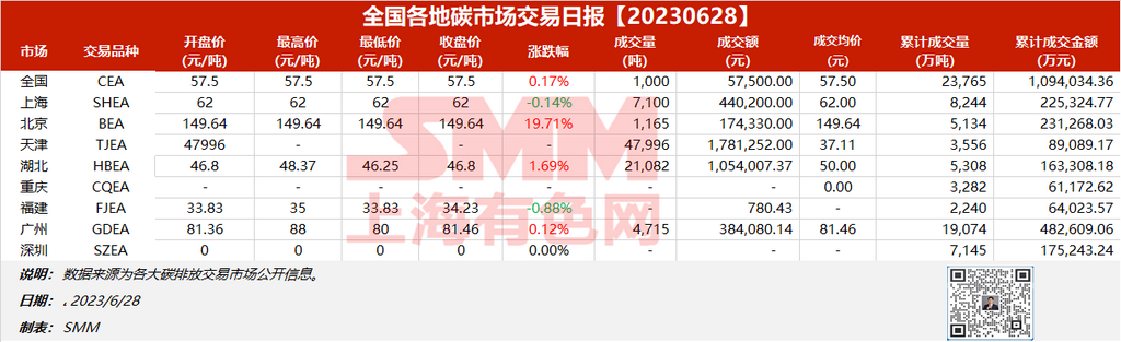 全国各地碳市场交易日报20230628【碳排放交易日报】