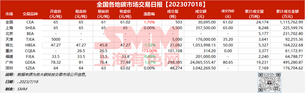 全国各地碳市场交易日报202307018【碳排放交易日报】
