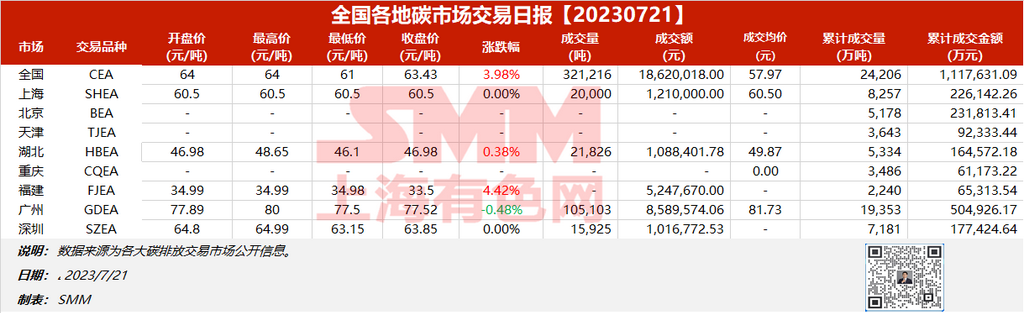 全国各地碳市场交易日报20230721【碳排放交易日报】