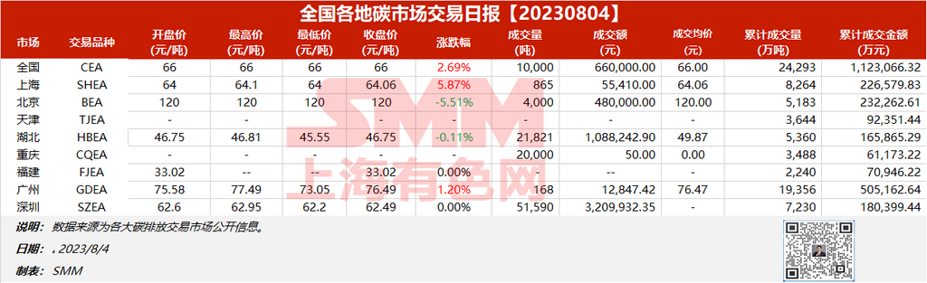 全国各地碳市场交易日报20230804【碳排放交易日报】