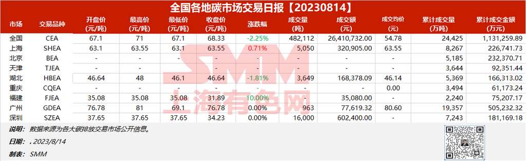 全国各地碳市场交易日报202308014【碳排放交易日报】