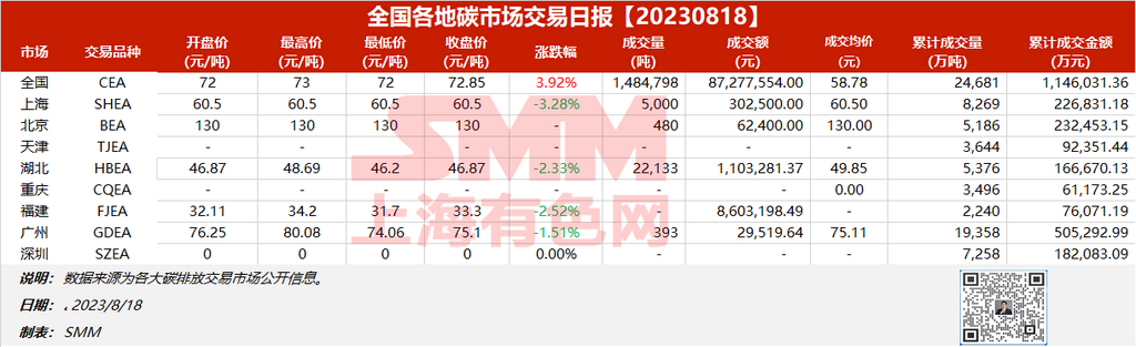 全国各地碳市场交易日报202308018【碳排放交易日报】