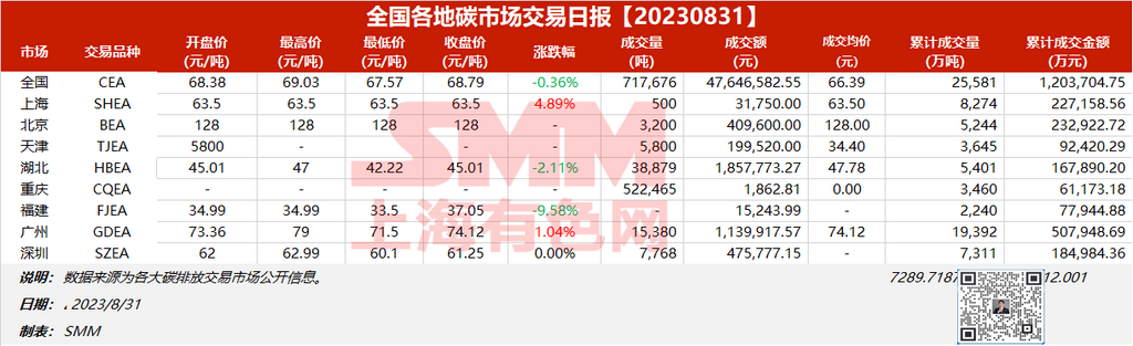 全国各地碳市场交易日报20230831【碳排放交易日报】