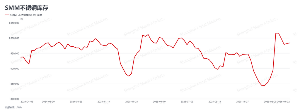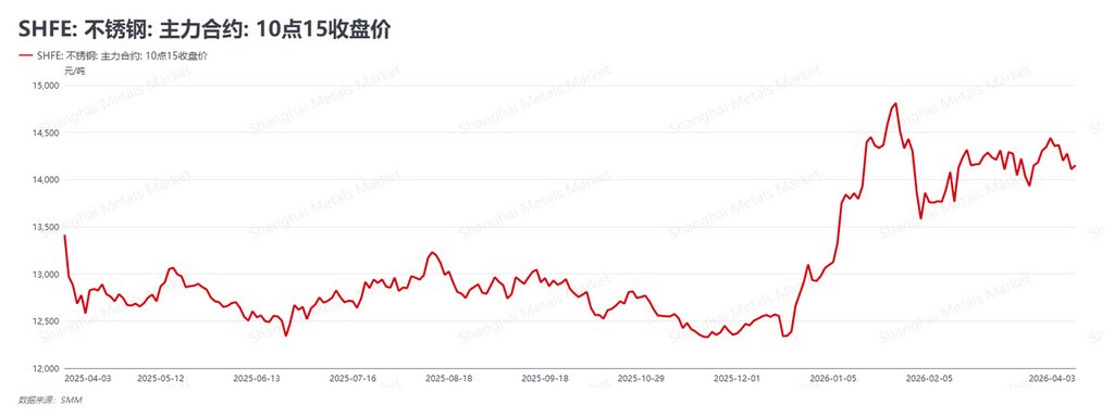 SMM数据显示,本周(2026年4月6日-4月10日)作为清明节后的首个交易周,不锈钢主力合约(SS2605)在宏观情绪显著回暖的带动下呈现修复性反弹走势。截至4月10日收盘,合约报价上行至14470元/吨,较节前收盘价14150元/吨上涨320元/吨。本周市场的核心驱动力已由“成本逻辑”彻底转向“宏观情绪驱动”:中东局势的阶段性降温与国内央行大额流动性投放共同提振了多头信心,但在高排产、高库存以及成本下移的现实压制下,现货价格表现远逊于期货,盘面进一步上探的动能受限。