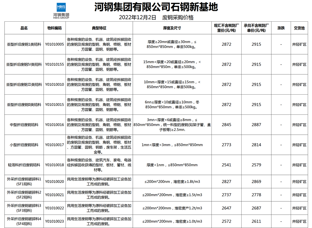 今日 河钢石钢新基地 废钢采购报价已更新,有货的朋友欢迎联系我们!