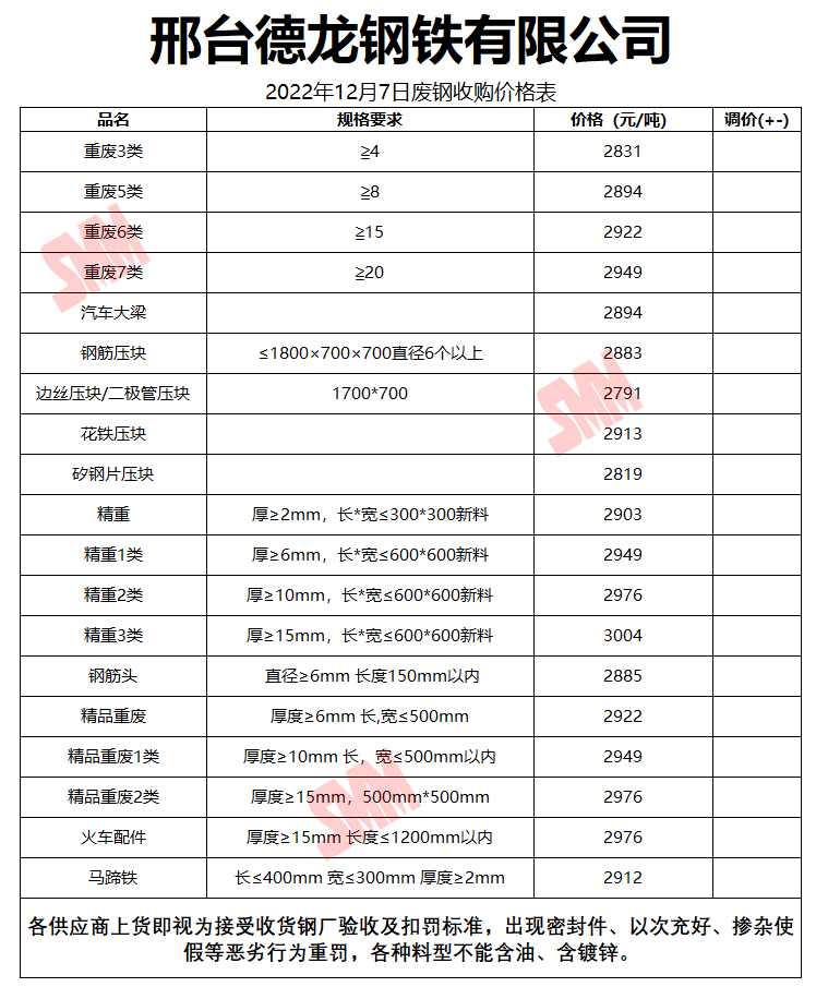 12月23日13时30分 河南安阳钢铁 废钢采购调价