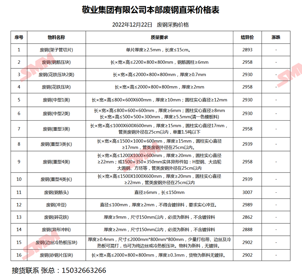 今日 敬业钢铁本部 废钢采购报价已更新,有货的朋友欢迎联系我们!