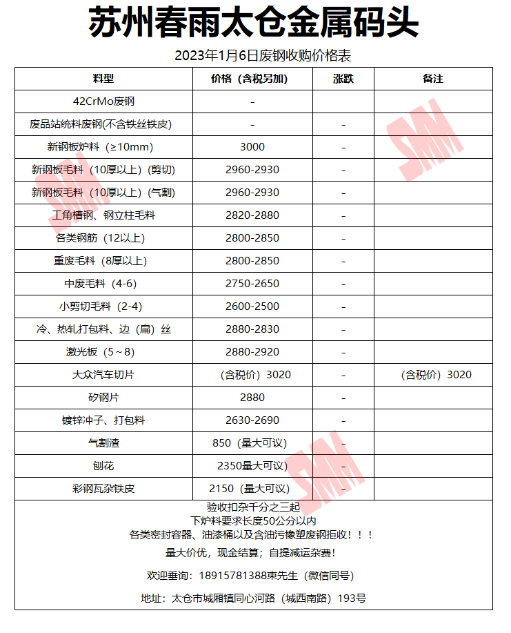 今日 苏州春雨太仓金属码头 废钢采购报价已更新,有货的朋友欢迎联系我们!
