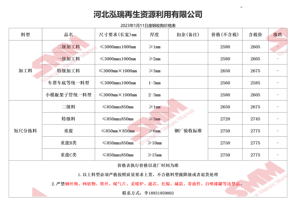 今日 河北泓瑞再生资源利用有限公司 废钢采购报价已更新,有货的朋友欢迎联系我们!