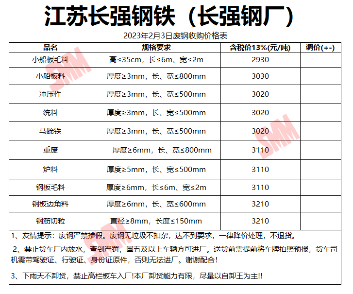 2月3日江苏长强钢铁 废钢收购报价