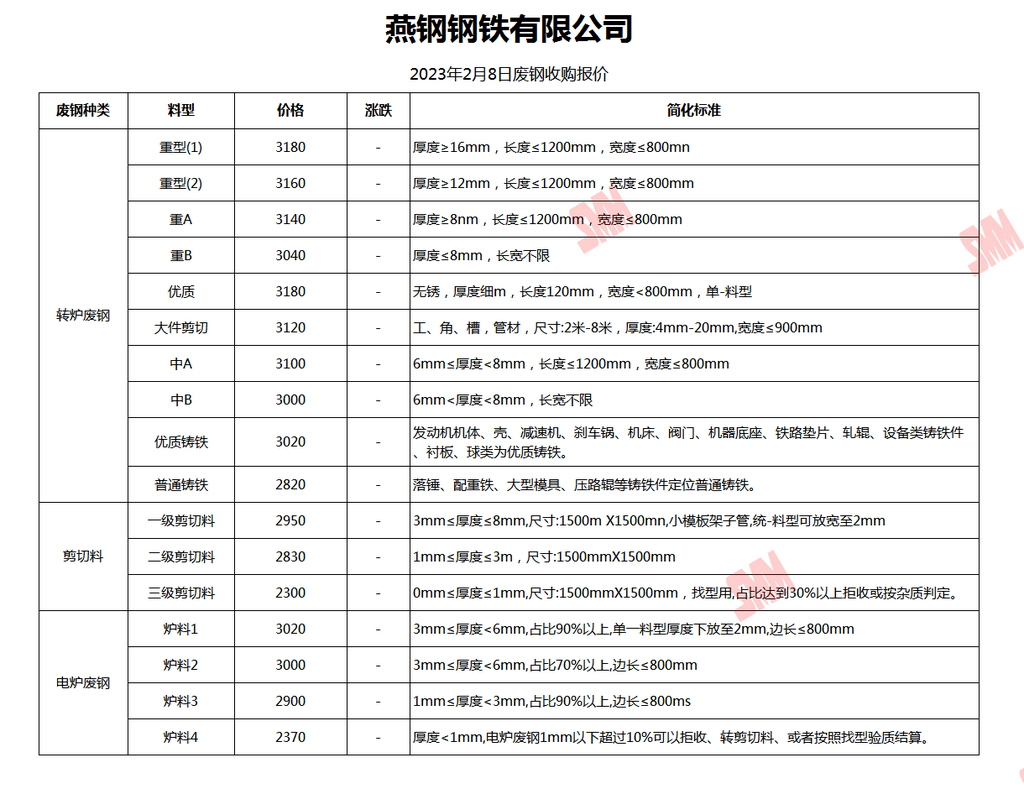 2月8日燕钢钢铁 废钢收购报价