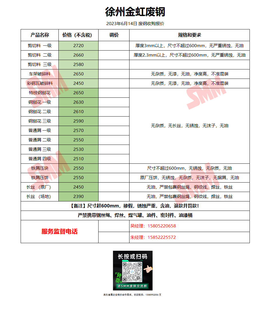 6月14日徐州金虹 废钢收购报价