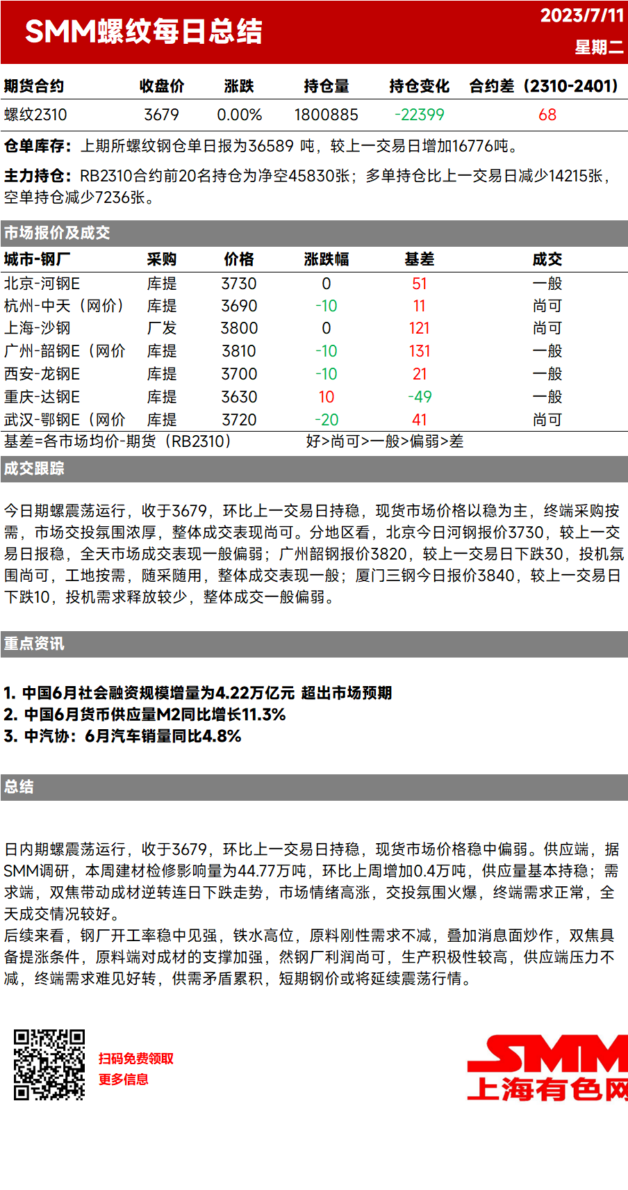 【SMM螺纹日评:成本支撑加强 扭转成材跌价行情】今日期螺震荡运行,收于3679,环比上一交易日持稳,现货市场价格以稳为主,终端采购按需,市场交投氛围浓厚,整体成交表现尚可...
