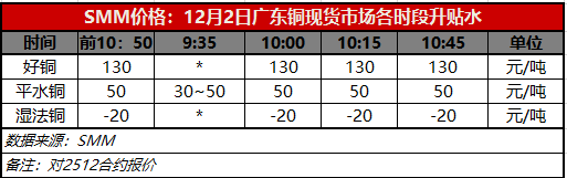 现货市场:广东库存连续2天增加,到货增加是主因。铜价出现回落下游采购欲较上日上升,但持货商仅维持昨日报价,整体交投较昨日有所好转。本日广东地区电解铜采购情绪为1.96较上一交易日上升0.2,出货情绪为2.74较上一交易日下降0.1(历史数据可以登录数据库查询)。截至到11点当月合约好铜报130元/吨,平水铜报升水50元/吨,湿法铜报贴水20元/吨。