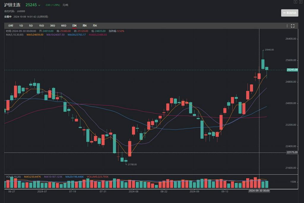【SMM分析:2024年9月锌价走势回顾及10月展望】截至9月30日,沪锌主力收于25120元/吨,单月大幅上涨1220元/吨,涨幅达5.10%。月初,沪锌短暂下行探低22305元/吨,随后低位反弹并一路走高,于月底摸高25120元/吨,9月锌价重心较8月上升明显,大幅拉涨动力何在?10月会如何走…...
