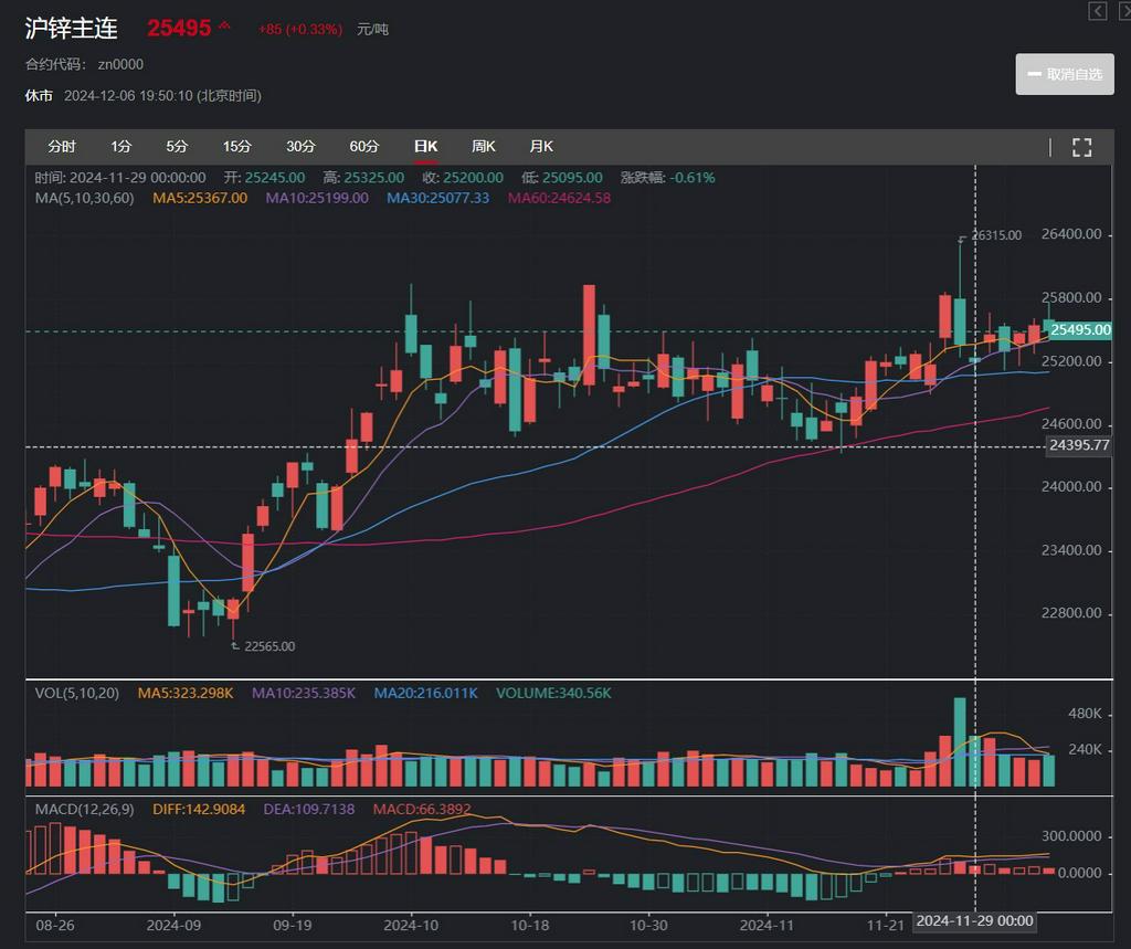 截至11月29日,沪锌主力收于25200元/吨,单月下滑75元/吨,跌幅0.30%。11月整体锌价基本于25000元/吨左右运行,整体重心较上月小幅下滑,于中旬探低24330元/吨,于月底冲至年内高位,摸至26315元/吨,11月锌价整体维持高位,12月又会如何?
